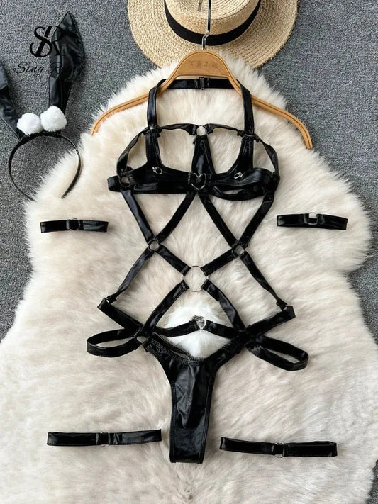 LacyNighty™ Ella Wetlook Bodysuit w/ Choker