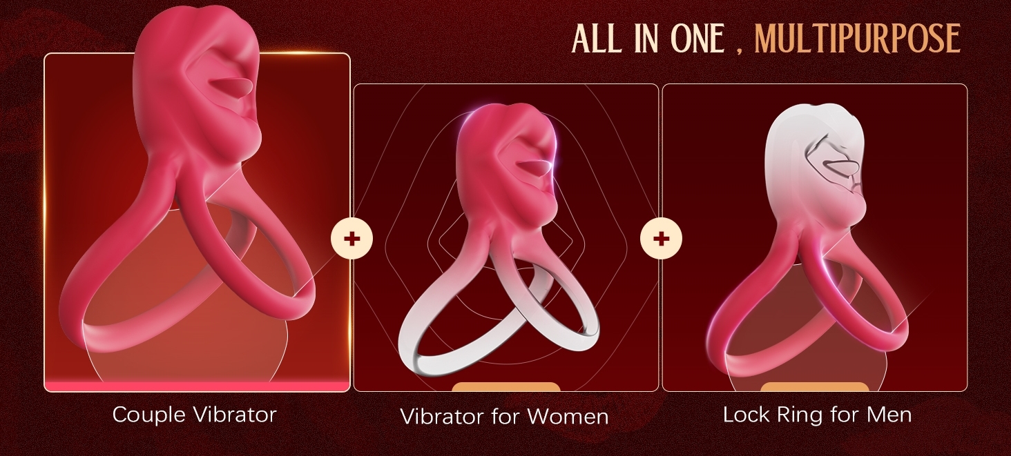 Enjoy for two- Simultaneous stimulator for penis, testicles and clitoris. Equivalent to getting a male penis ring and a female vibrator, which can not only be used for self-pleasure, but also for the sublimation of romantic relationships.It comes with two motors, one for clitoral arousal and the other for intense massage of the penis and testicles.